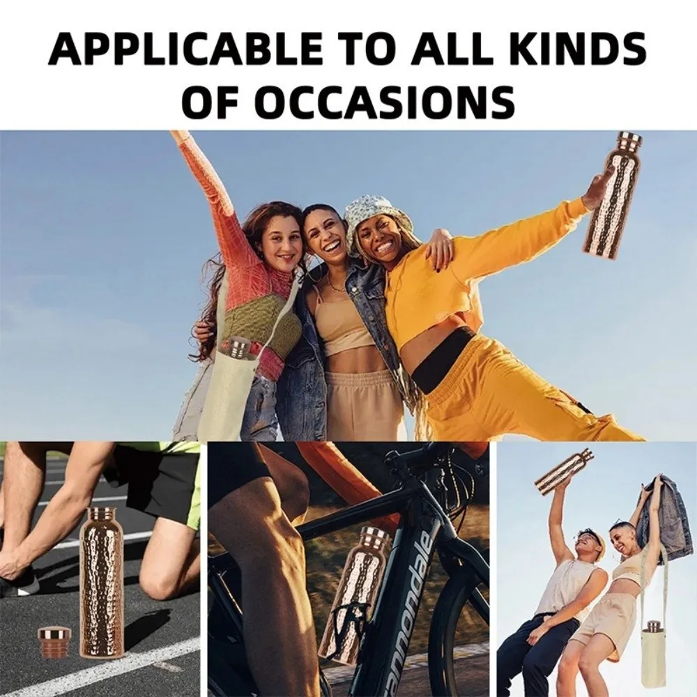 This 800ml copper water bottle is designed for everyday hydration at home, work, or on the go. Made from high-quality copper, it offers durability and a premium look. The thermal insulation helps maintain your drink’s temperature for longer periods. An anti-slip silicone base keeps the bottle stable on desks and gym floors. The leakproof design prevents spills inside bags and backpacks. Its one-click open lid allows easy, one-handed operation during workouts or travel. The slim shape fits comfortably in most cup holders and bottle cages. This bottle is ideal for sports, yoga, hiking, and daily commuting. Copper’s natural properties help keep water fresh tasting. A stylish and practical choice for an active and eco-conscious lifestyle.